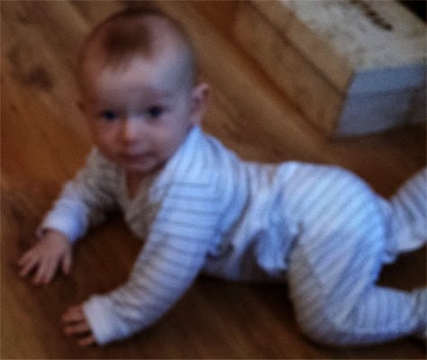 fast asleep when I arrived. Littlun's growing; he can now crawl. I say "crawl" - he