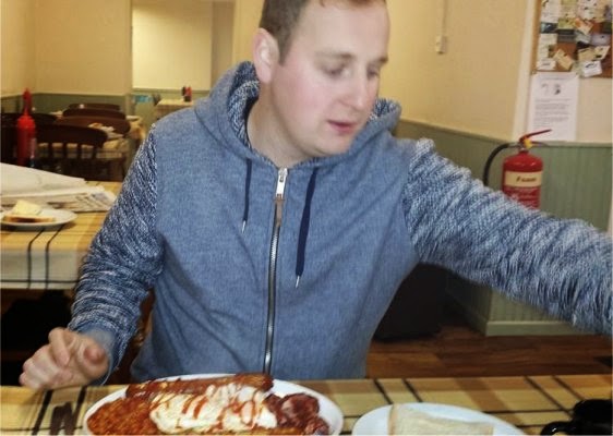 that; he can be fussy. We got cream cakes too, and we had a minor incident at