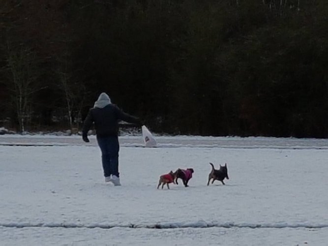 had the sense to wear a coat and the dogs didn’t care about the rain. Once