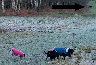 we saw several other dog walkers, and a herd of deer which was far too fast