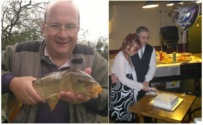17 September 2011 (Saturday) - Carp, Anniversaries...I had a reasonable night’s sleep: which was good. I woke about 7am, and after lying restless for half an hour I thought I’d have a quick go on the computer. I had some silly bits of paperwork to do. It’s amazing how silly bits of paperwork can take up so much of your life: what I thought would take up ten minutes actually kept me quiet for over two hours. After a spot of brekkie, me and ‘er indoors TM went up town. I‘d found a dozen DVDs that I thought I might flog to the CEX shop. They took ten of them, and gave me a fiver’s credit. So I spent that on more DVDs. We then mooched round town a bit more, then came home, where we watched the last episode of this season of Torchwood. I won’t say too much about it, as I know there are those of my loyal readers who haven’t seen it yet, but let’s just say that I’ve never been a big fan of Torchwood, and this season has done nothing to change my opinion of the show. The plan for the afternoon had been to go fishing. But the weather wasn’t good, and I must admit to having had reservations about going fishing because of the weather. But we set off for fishing as planned. Half way there the heavens opened, and I suspected the worst. But the downpour stopped as quickly as it started, and we had a really good (and dry) afternoon at the pond. Steve and Sarah got to try out their new rods, and I got to try out float-ledgering. I was quite pleased with float-ledgering – it seems to have worked. I only had one fish all afternoon, but it was the biggest fish I’ve had this year. Unfortunately as the afternoon wore on, it got rather cold; and so we gave it till half past five and then came home. I washed off the worst of the carp slime and the sheep poo, and set off for Hastings for a silver wedding anniversary party. Twenty five years – I feel old…. |